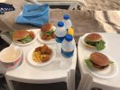 Пляж порадовал - видно горы, много самолетов, море чистое и тёплое. Довольно много лежаков, без лежака никто никогда не оставался, всем хватало. Да, есть осы и кусачие рыбки (меня так и не укусили ни разу) - но это не в минус отелю. Из еды на баре можно сделать гамбургеры, есть картошка фри, овощи, нагетсы и безумно вкусные лепешки (лаваш с разной начинкой).