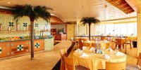 - Riviera - элегантный ресторан в тропическом стиле , предлагает гостям изысканное обслуживание в стиле Le Buffet, и A La Card для гостей круизного лайнера. Расположен на 9 палубе. Вас ждет изысканное ассорти Sea Food, салаты и блюда на любой вкус, для гостей будут творить лучшие специалисты по кулинарному искусству. Ресторан Riviera вмещает до 360 клиентов с рассадкой для обслуживания по меню, и имеет открытую террасу с прекрасным видом на море. Уютный бар Riviera расположен на открытой палубе в корме судна рассчитан на 126 пассажиров, здесь можно попробовать коллекцию коктейлей и напитков, до и после гастрономического путешествия. Ресторан открыт на завтрак, обед в стиле La Buffet и в режиме a la Cart для ужинов по предварительной записи. Подходит для проведения закрытых вечерних мероприятий и корпоративов.